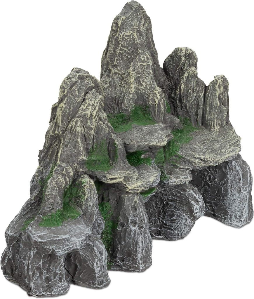 Esta roca decorativa para acuarios está diseñada para imitar formaciones naturales, ofreciendo un refugio seguro y un entorno visualmente atractivo para peces de agua dulce y salada. Fabricada en poliresina atóxica y duradera, incorpora detalles de musgo y texturas realistas que aportan profundidad al paisaje acuático. Sus cuevas y salientes cuentan con dos pasajes ideales para peces pequeños, proporcionando escondites que reducen el estrés y fomentan el comportamiento exploratorio. Con unas dimensiones aproximadas de 21 × 24 × 14 cm, es un adorno llamativo que encaja en acuarios medianos y grandes. También es apta para terrarios, añadiendo un toque natural y decorativo. Fácil de colocar y mantener, transforma cualquier tanque en un entorno más dinámico y enriquecido.
