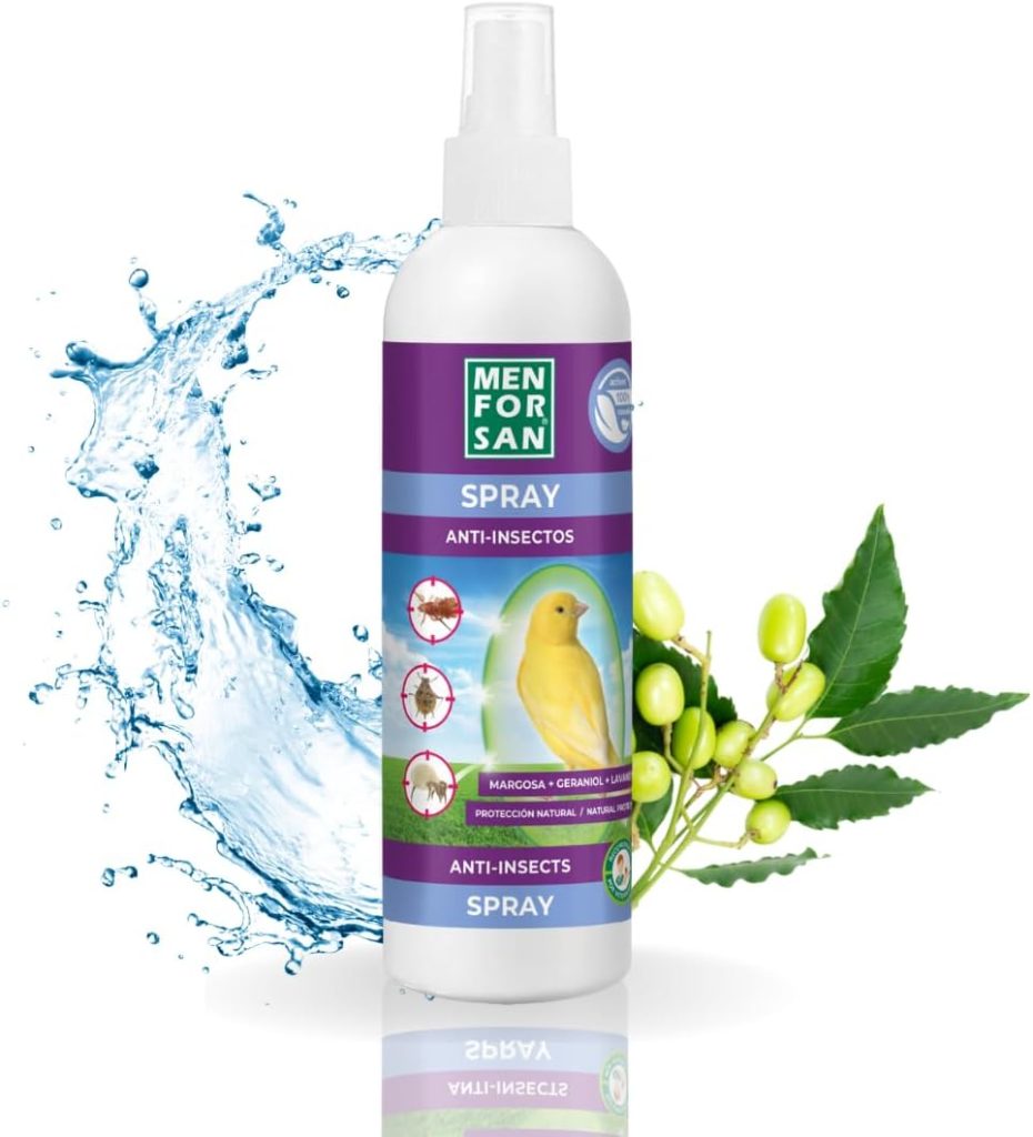 MENFORSAN – Spray Anti-Insectos Natural para Aves con Margosa, Geraniol y Lavandino, 250 ml