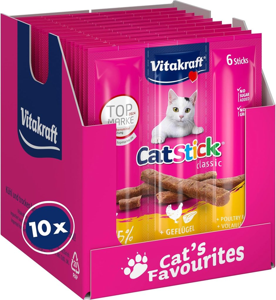 Vitakraft Cat Stick Classic con Aves e Hígado – Snack Carnoso Irresistible para Gatos